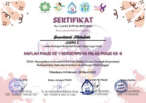 Guswitanti Abdullah mahasiswi Program Studi PIAUD IAIN Sultan Amai Gorontalo sukses meraih prestasi terbaik 2 pada kategori lomba cipta lagu anak, yang diadakan oleh Jurusan dan HMJ PIAUD UIN Suska RIAU. Setelah melewati proses seleksi yang cukup panjang sejak 21 Maret – 30 maret 2022, prodi PIAUD IAIN Sultan Amai Gorontalo diumumkan sebagai peraih terbaik 2 dalam cabang lomba kreasi cipta lagu anak (sertifikat penghargaan Cipta Lagu Juara 2). Pada lomba tersebut Guswitanti Abdullah yang merupakan mahasiswi prodi PIAUD angkatan 2018 mengirimkan manuskrip dan video lagu ciptaannya yang berjudul ” Ayo Makan Sayur”. Selain untuk keperluan lomba lagu ini diciptakan juga dengan tujuan menggalakkan kebiasaan makan sayur pada anak-anak. Menurut Guswitanti yang akrab disapa dengan Intan, visual yang dibuat dalam lagu dan lirik yang mudah diingat diharapkan dapat membantu membangun kebiasaaan baik bagi anak dalam mengkonsumsi sayur dan buah, hal ini dilatarbelakangi masalah angka konsumsi sayuran hijau yang rendah oleh anak-anak. Selamat untuk Guswitanti Abdullah atas capaian prestasinya . Teruslah berkarya dan ikhlas memberi demi tercapainya generasi emas.