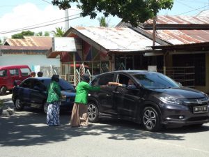 Pembagian masker oleh Mahasiswa/Mahasiswi Prodi PIAUD IAIN Sultan Amai Gorontalo kepada para penduduk dan pengendara di sekitar Kampus II IAIN Sultan Amai Gorontalo