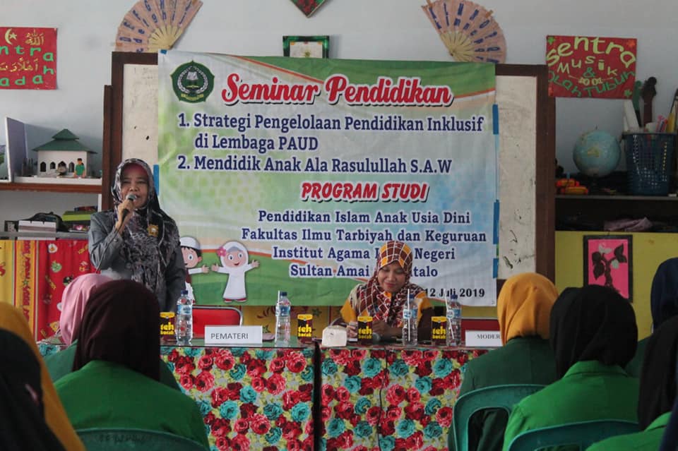 Seminar Pendidikan dan Studi Lapangan terkait strategi pengelolaan pendidikan inklusif di lembaga PAUD dilaksanakan oleh program studi pendidikan islam anak usia dini IAIN Sultan Amai Gorontalo, bertempat di TK Damhil DWP UNG, tanggal 12 Juli 2019. TK Damhil DWP UNG sendiri  saat ini berstatus sebagai laboratorium PG PAUD Universitas Negeri Gorontalo yang menerapkan prinsip-prinsip pendidikan inklusif di lembaga PAUD dan terakreditasi A. Studi observasi mahasiswa PIAUD IAIN Sultan Amai Gorontalo disambut langsung oleh kepala TK Damhil DWP UNG yaitu ibu Hasni Mohamad M.Pd. Kons, yang sekaligus memberikan materi dan membagi informasi langsung terkait manajemen penyelenggaraan PAUD Inklusif.PAUD Damhil DWP UNGi dikenal sebagai salah satu sekolah regular yang memfasilitasi pelayanan pendidikan pada anak-anak berkebutuhan khusus.